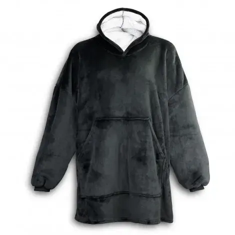 Extra-cosy blanket hoodie made from luxe 180gsm polyester flannel with a soft 180gsm sherpa lining for added warmth. The hoodie features a large kangaroo pocket on the front, and one size will fit most.