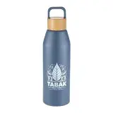 Custom Aspen Recycled Bottle with Bamboo Lid - 1L Blue Mid