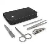 Luxury five-piece set including nail clippers, nail file, nail scissors, tweezers and a cuticle pusher