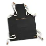 Apron features gunmetal rivets for attaching and looping natural cotton straps