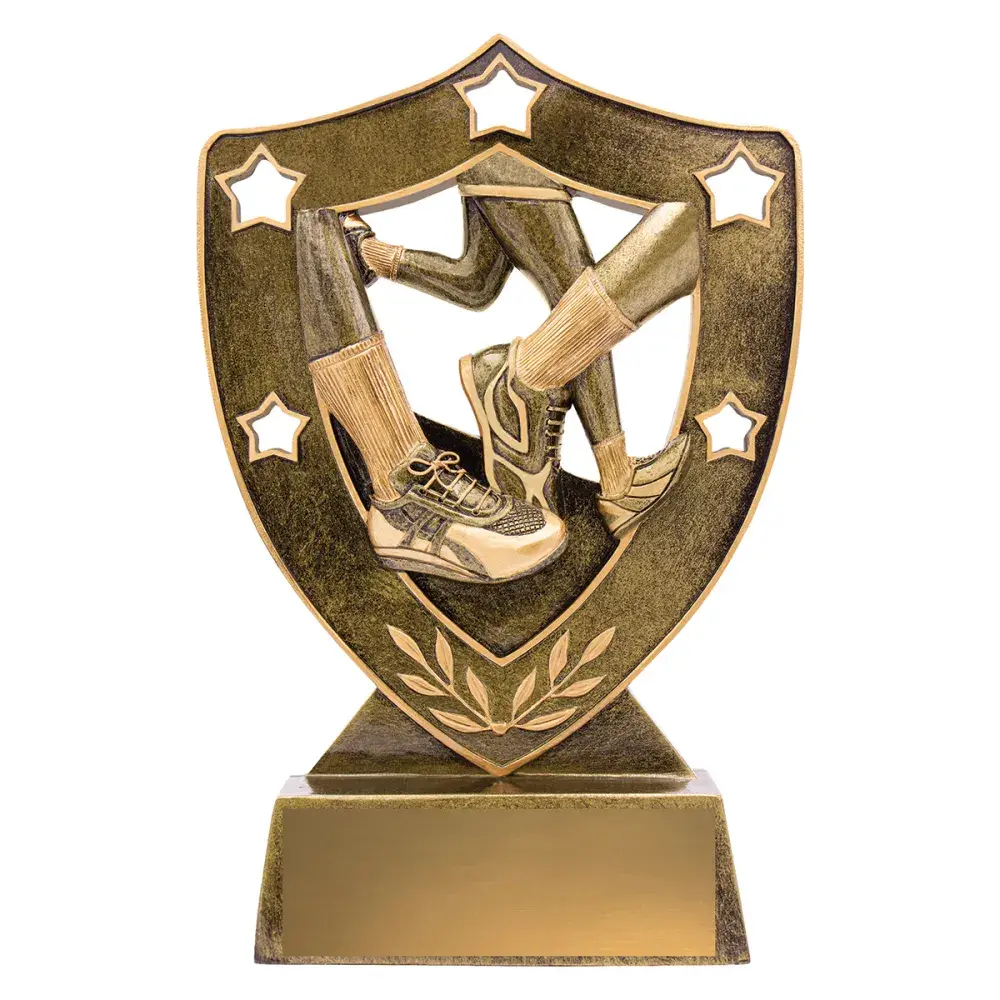 Classic wreath and shield inspired design, the Track Trophy Shield is an affordable trophy choice for running, track and athletics.