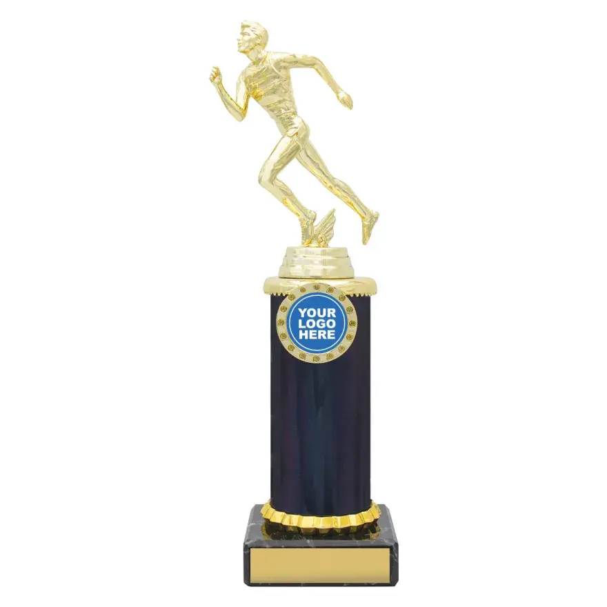 Husky series of trophies on premium black marble allows for different award options for your activity. Appealing antique silver and gold combination over number of sizes.