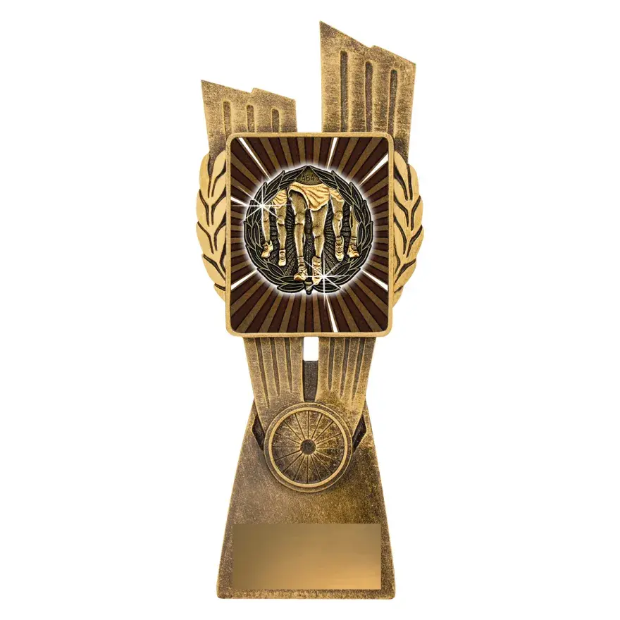 Husky series of trophies on premium black marble allows for different award options for your activity. Appealing antique silver and gold combination over number of sizes.