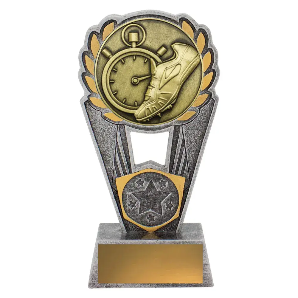 Elegant design in this 'Polaris' series showcases a finely designed metal insert representing your sport or activity. Same prestige metal inserts to be used in other trophies, awards and medals to create a versatile range of awards.