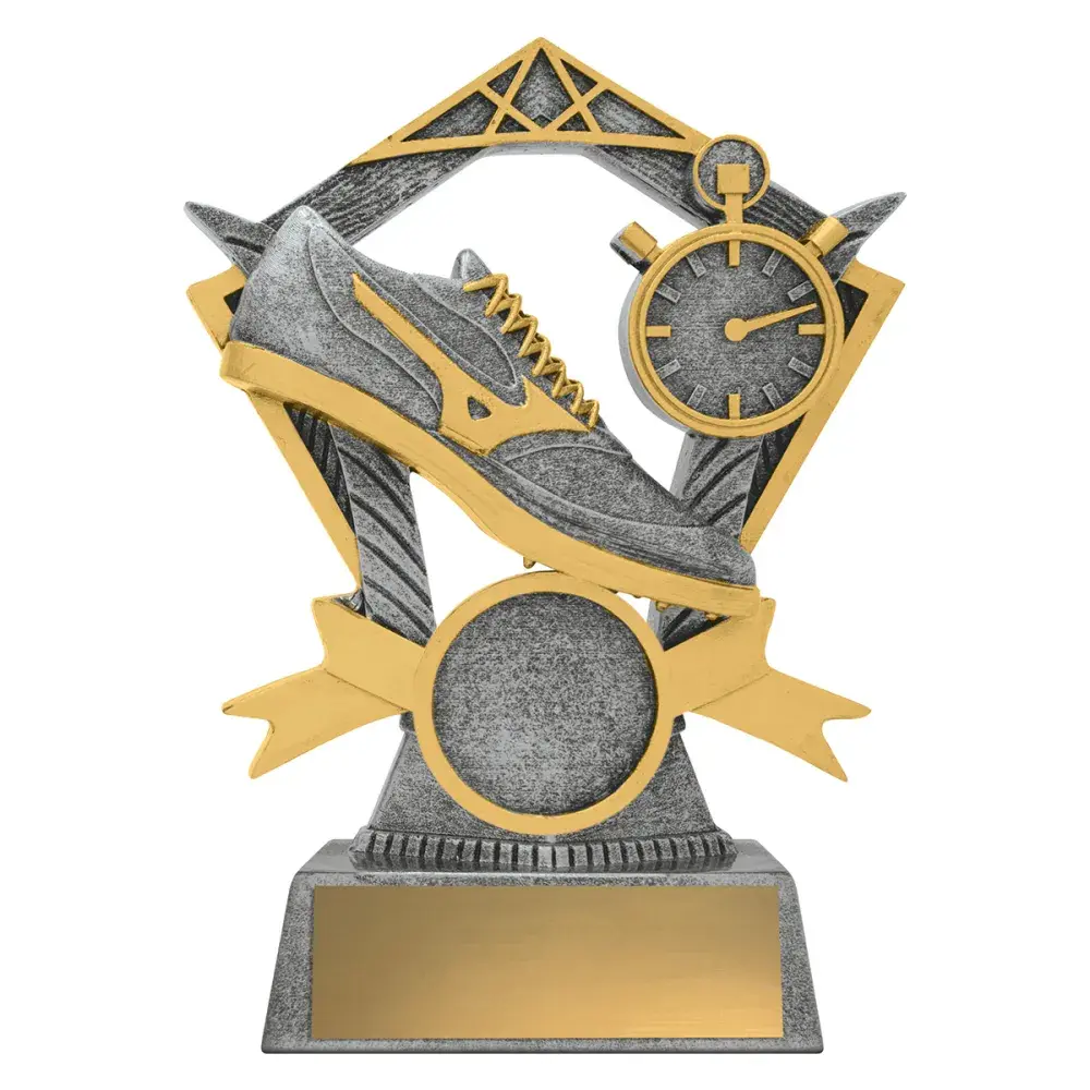 The Valour series of trophies presents a strong design of trophy highlighting the main elements for your sport. Finished in antique silver and gold with space for your custom logo.