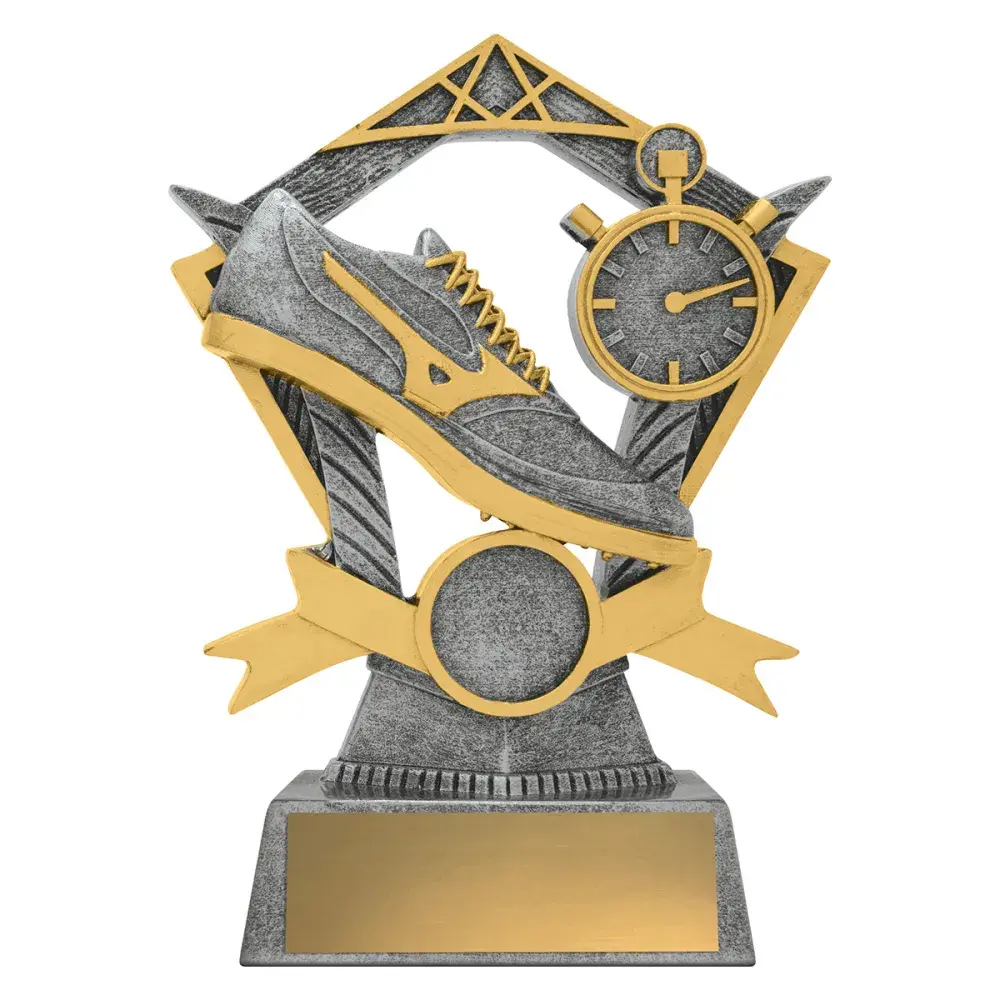 The Valour series of trophies presents a strong design of trophy highlighting the main elements for your sport. Finished in antique silver and gold with space for your custom logo.