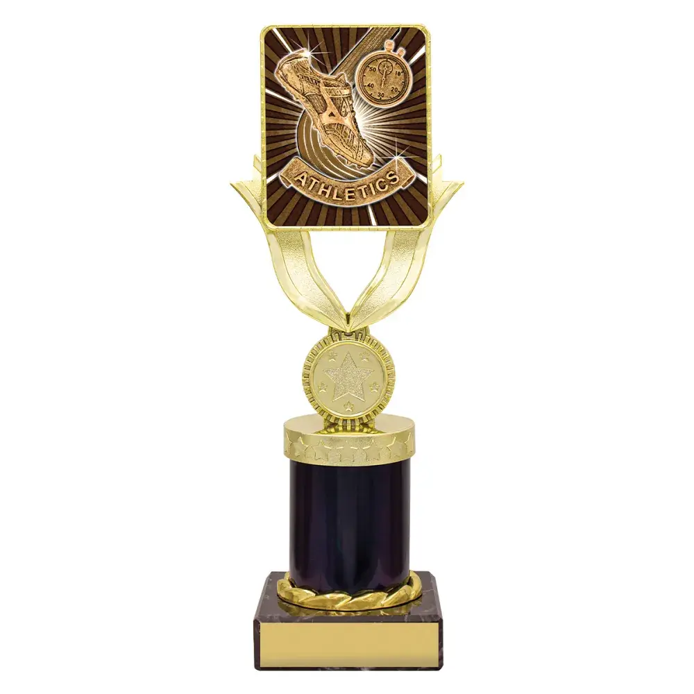 Brilliant athletics trophies in the Lynx Bold range features gold trophy holder showcasing the insert for your sport or activity. Range of sizes available.