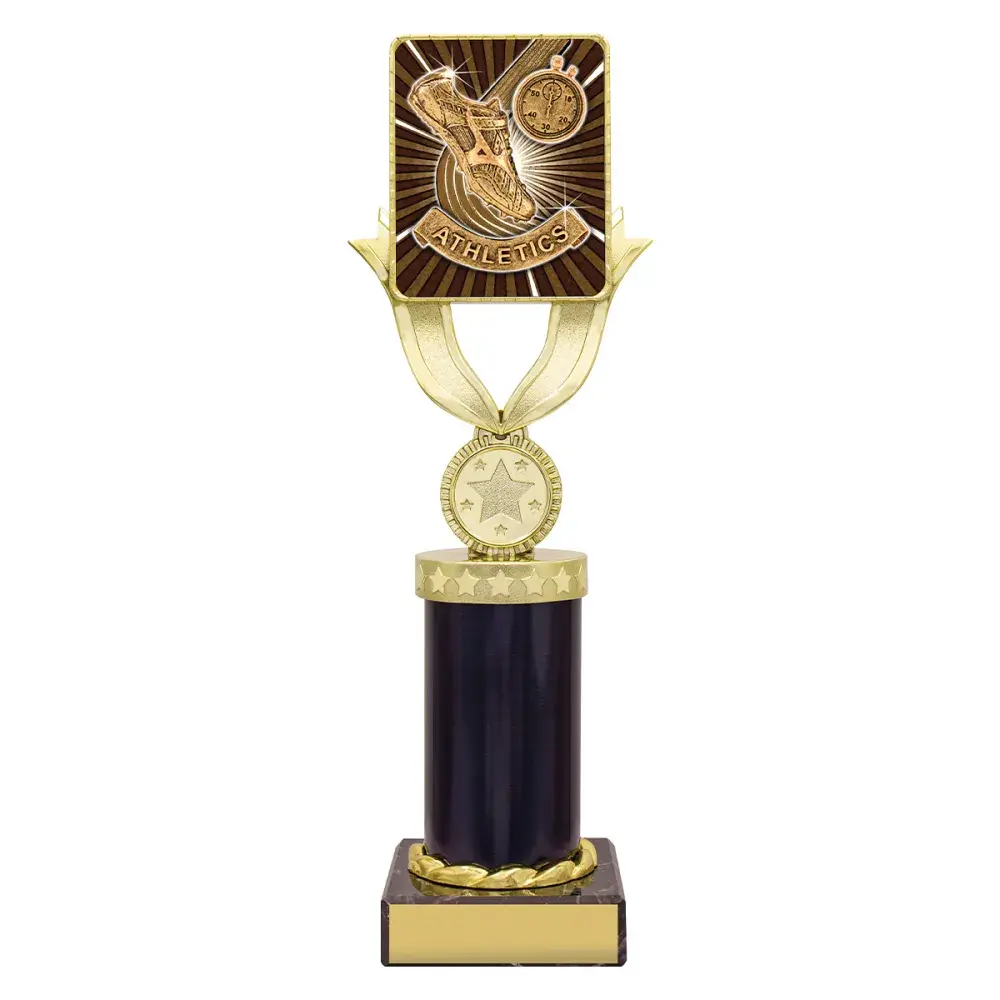 Brilliant athletics trophies in the Lynx Bold range features gold trophy holder showcasing the insert for your sport or activity. Range of sizes available.