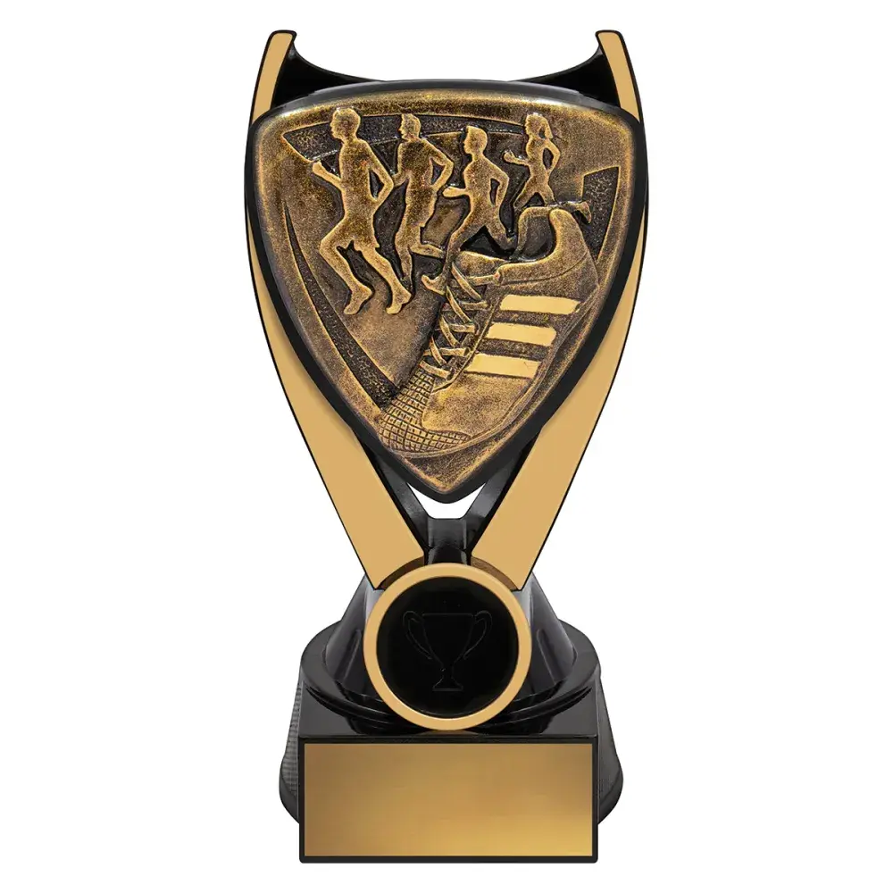 Nova series of trophies present a unique black & gold colour combination with a bold 3D type design to really celebrate the sport or activity of your awards.