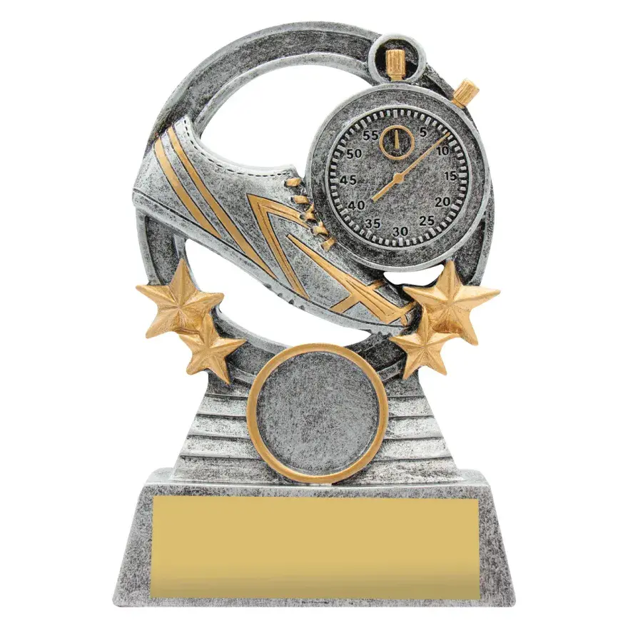The Peak Series is an innovative trophy series offering super value for such an impressive size range. An elevated design that showcases a male runner against a vibrant sunray background.