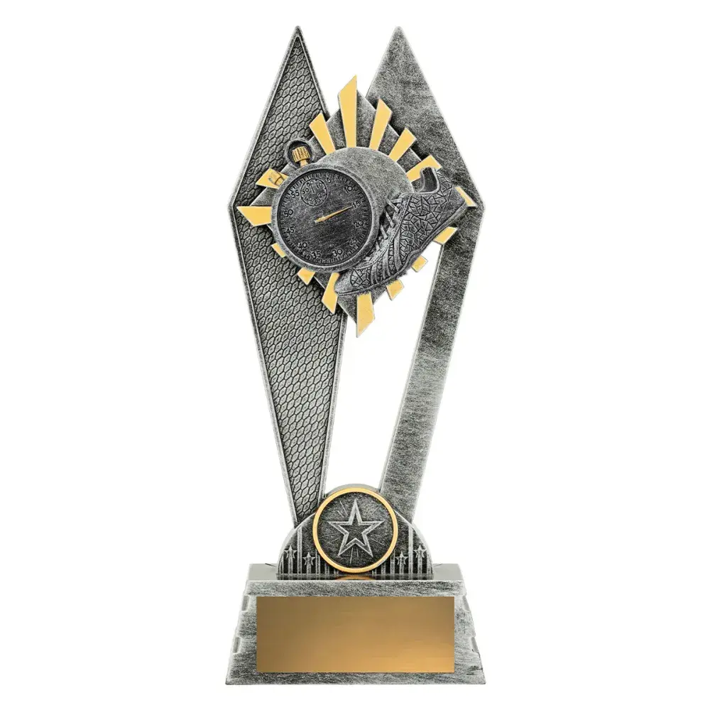 The Peak Series is an innovative trophy series offering super value for such an impressive size range. An elevated design that showcases the elements of track & field against a vibrant sunray background.