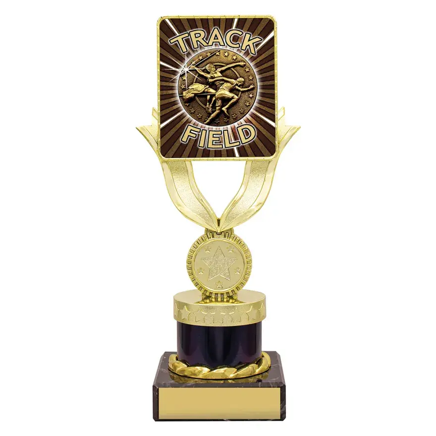 Standout timber trophies present a striking design for your awards. Consider for your top performing athlete awards.