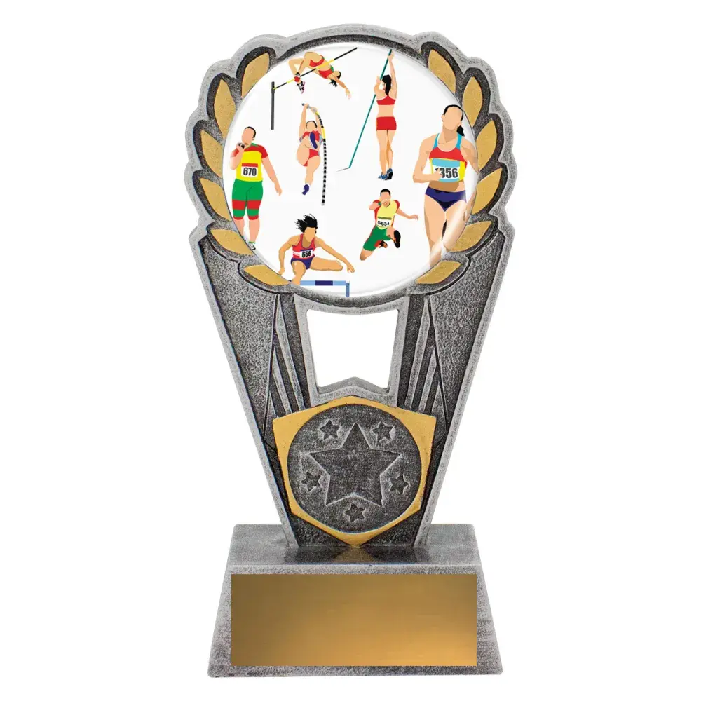 Polaris series offers a striking design of trophy with excellent options for personalisation. Trophies showcase different events for track & field over a number of sizes. Space for your 25mm logo if required.