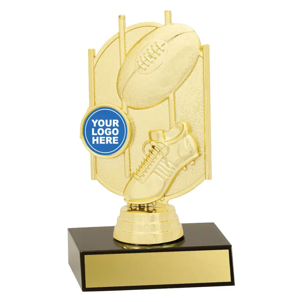 Classic series of column trophies available in different colours. Choose top for sport or activity. Aussie Rules series offers prominent space for your custom logo.