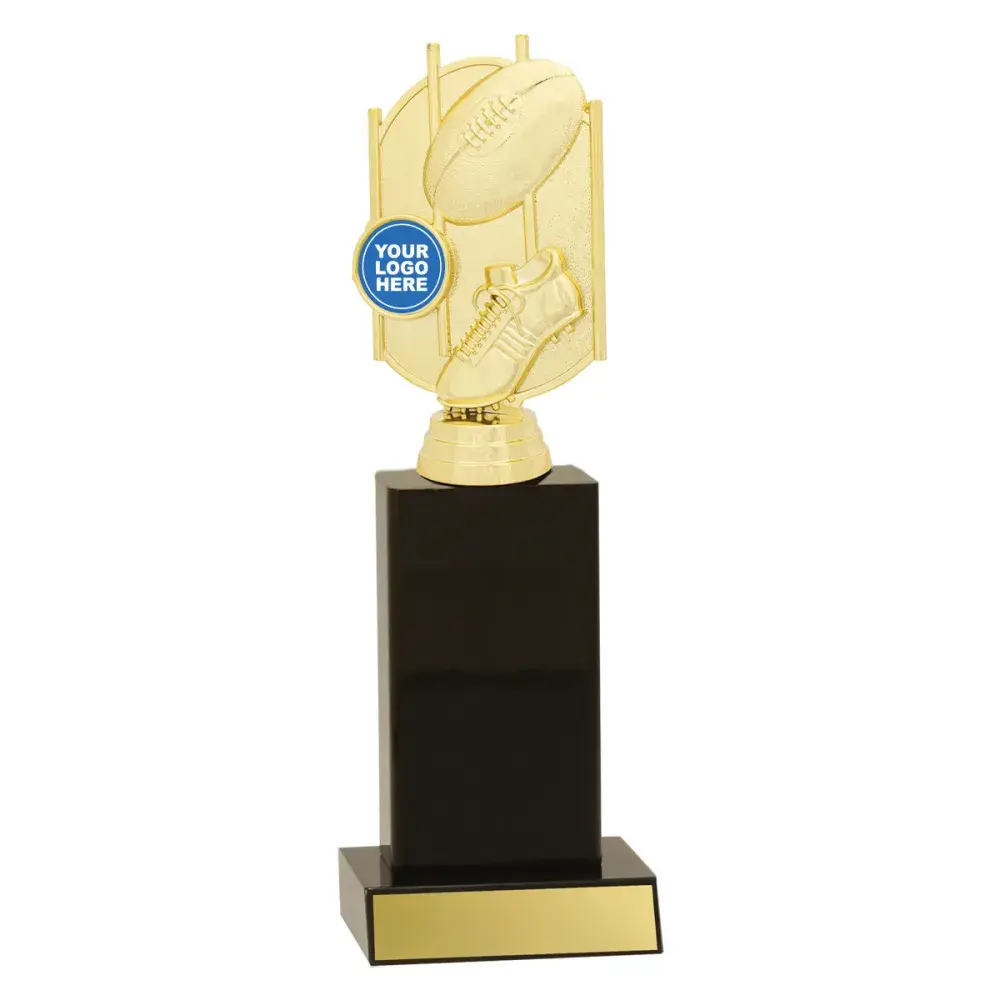 Classic series of column trophies available in different colours. Choose top for sport or activity. Aussie Rules series offers prominent space for your custom logo.