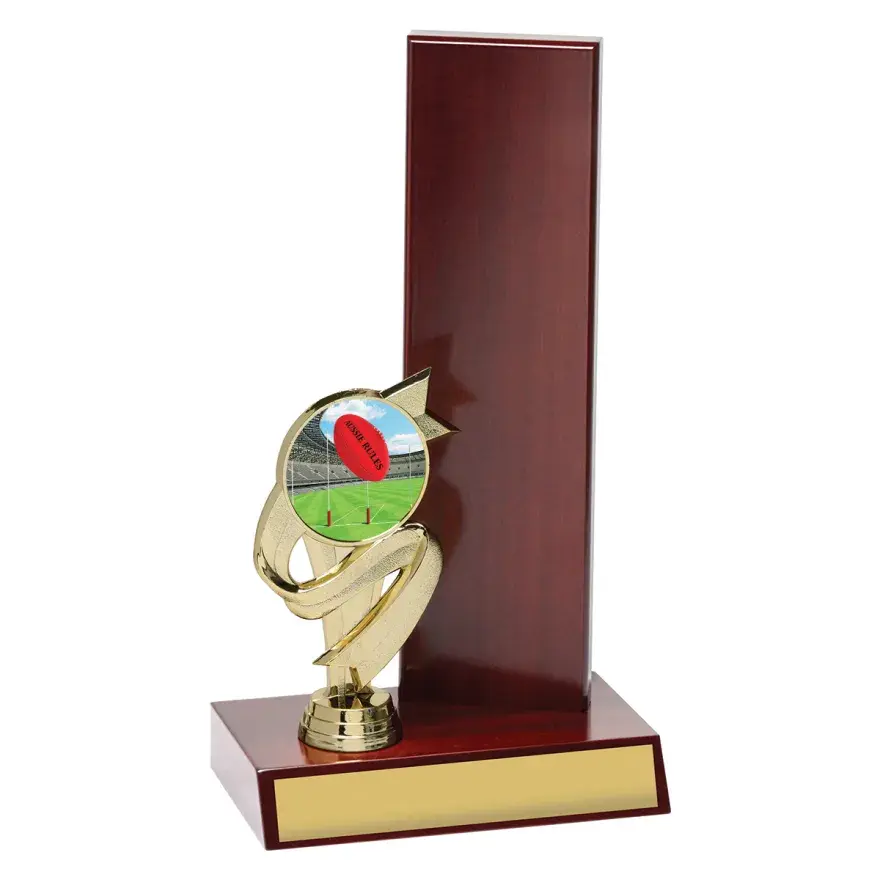Dynamic design of theme trophy, Aussie Rules Spinifex showcases bold design elements and offers option to include your custom logo.