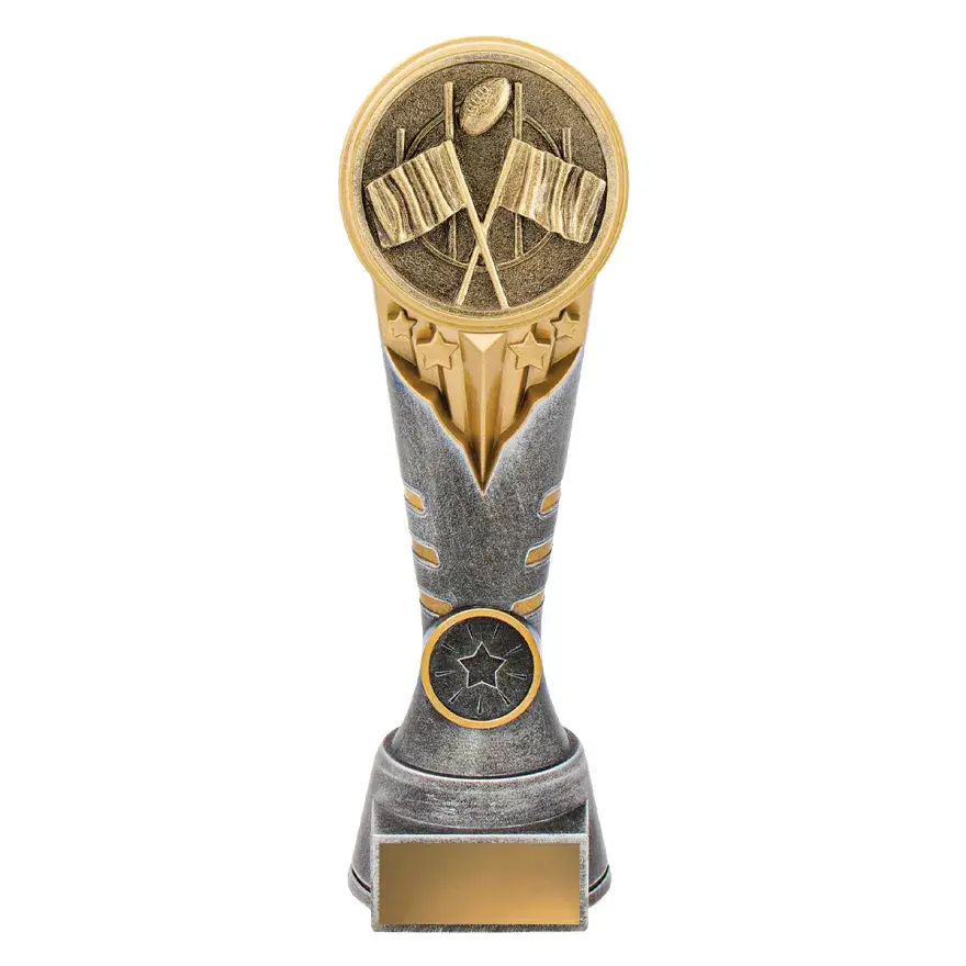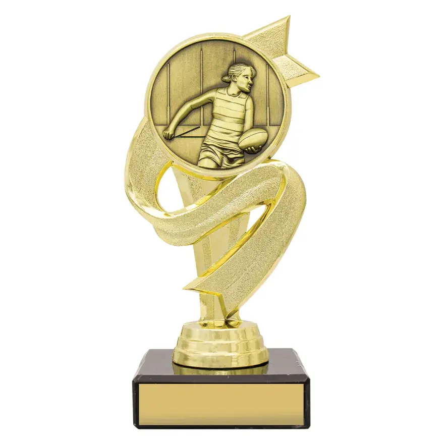 Fantastic series of footy trophies for your men's and boys Aussie Rules teams. Available in different sizes - catering for many different budgets and award categories. Vanguard series presents a dynamic figure against a stylish backdrop, with space for your engraving and 25mm insert if required.