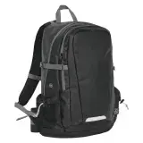 All-season, lightweight backpack with water resistant fabric designed for versatility and durability with technical features including back padding with breathable mesh, laptop compartment and multiple two-way zippered compartments.