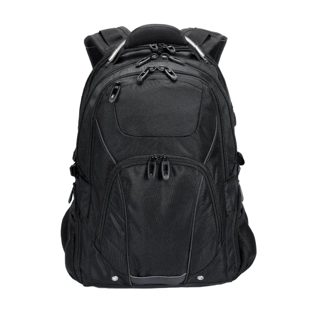 Durable Material: Made from rugged 600D PolyCanvas for enhanced durability and long-lasting use. | Spacious Design: Offers four compartments for easy organization and ample storage space. | Checkpoint-Friendly Layout: Designed to simplify airport security checks, making travel hassle-free. | Padded Laptop Compartment: Fits laptops up to 17 inches with extra cushioning for protection. | Dedicated Tablet Sleeve: A secure space for iPads or other tablets. | Organizer Section: Includes a mesh pocket, pen holders, and a built-in key clip to keep essentials in place. | Side Water Bottle Pocket: Convenient access to hydration while on the go. | Generous Capacity: Main compartment provides approximately 42 litres of storage, perfect for work, travel, or school.