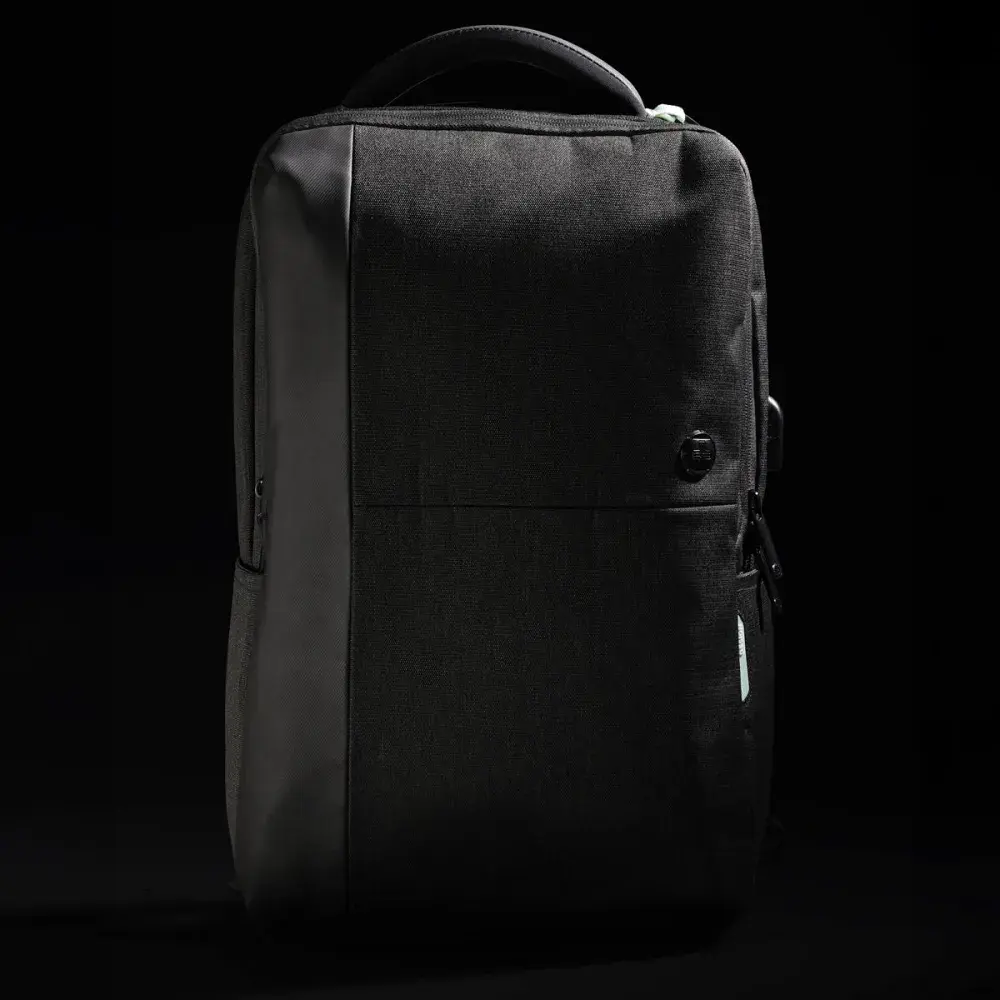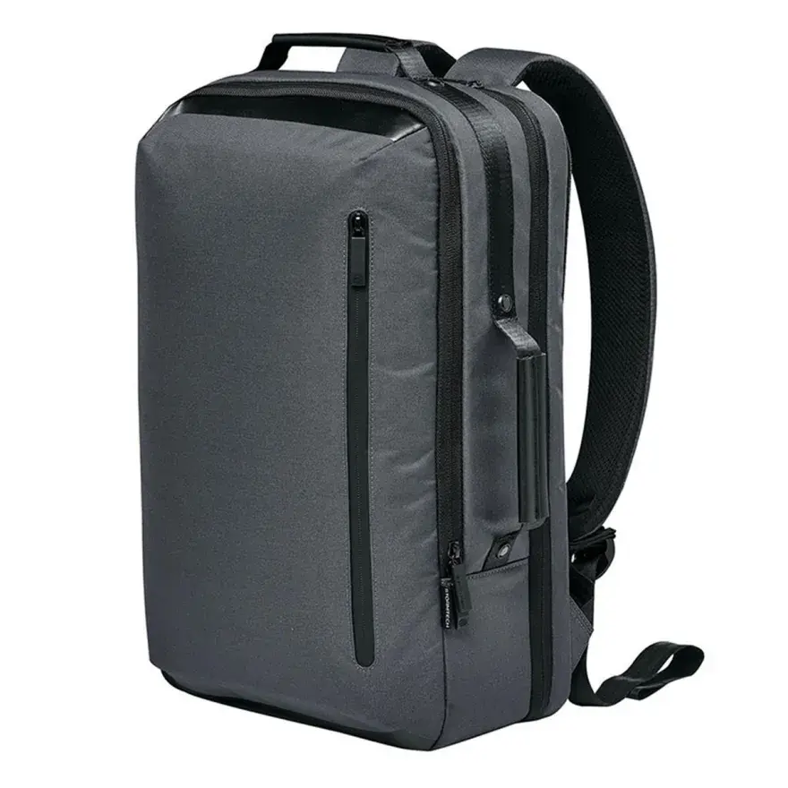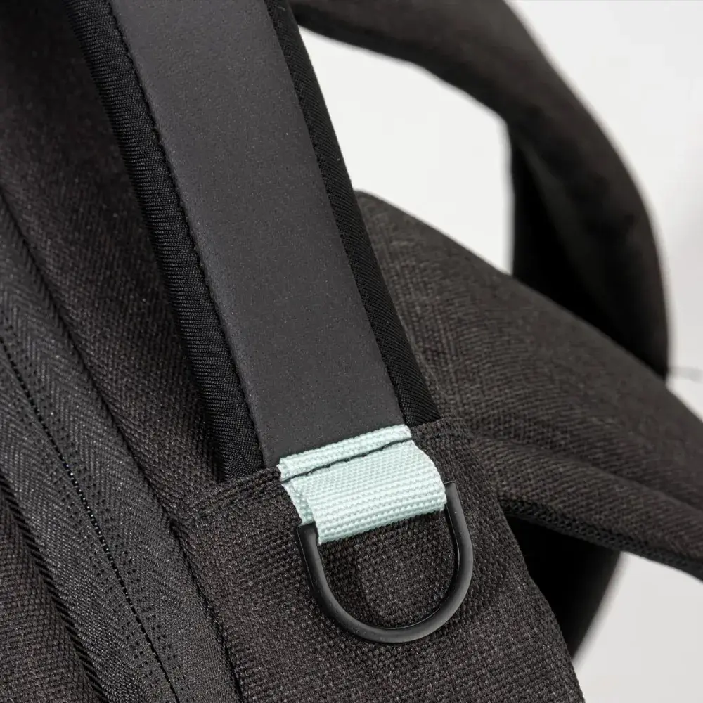 The AROSA Backpack is a stylish gray backpack with glacier-colored accents. Its design makes it perfect for students and professionals.