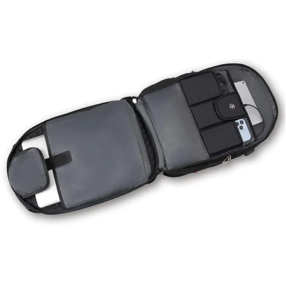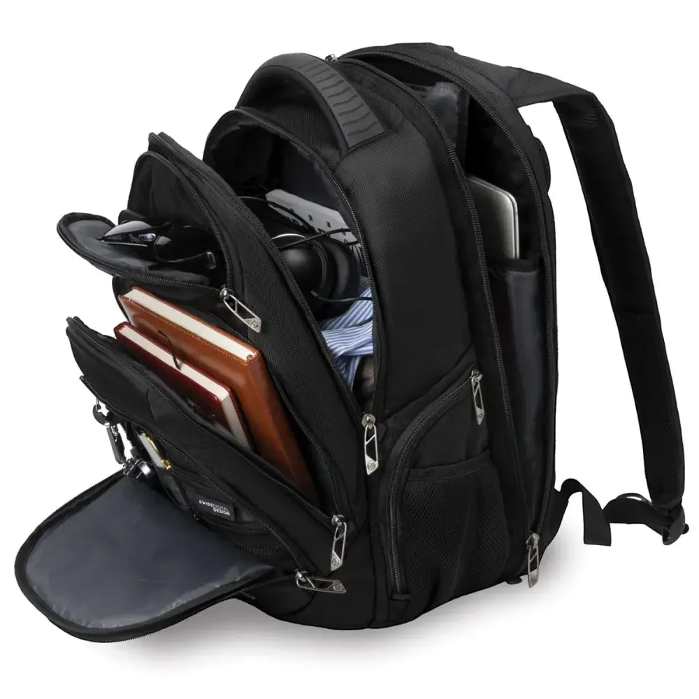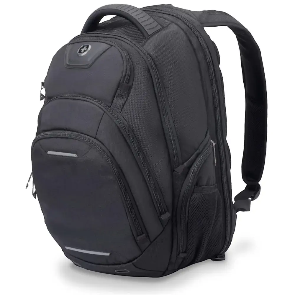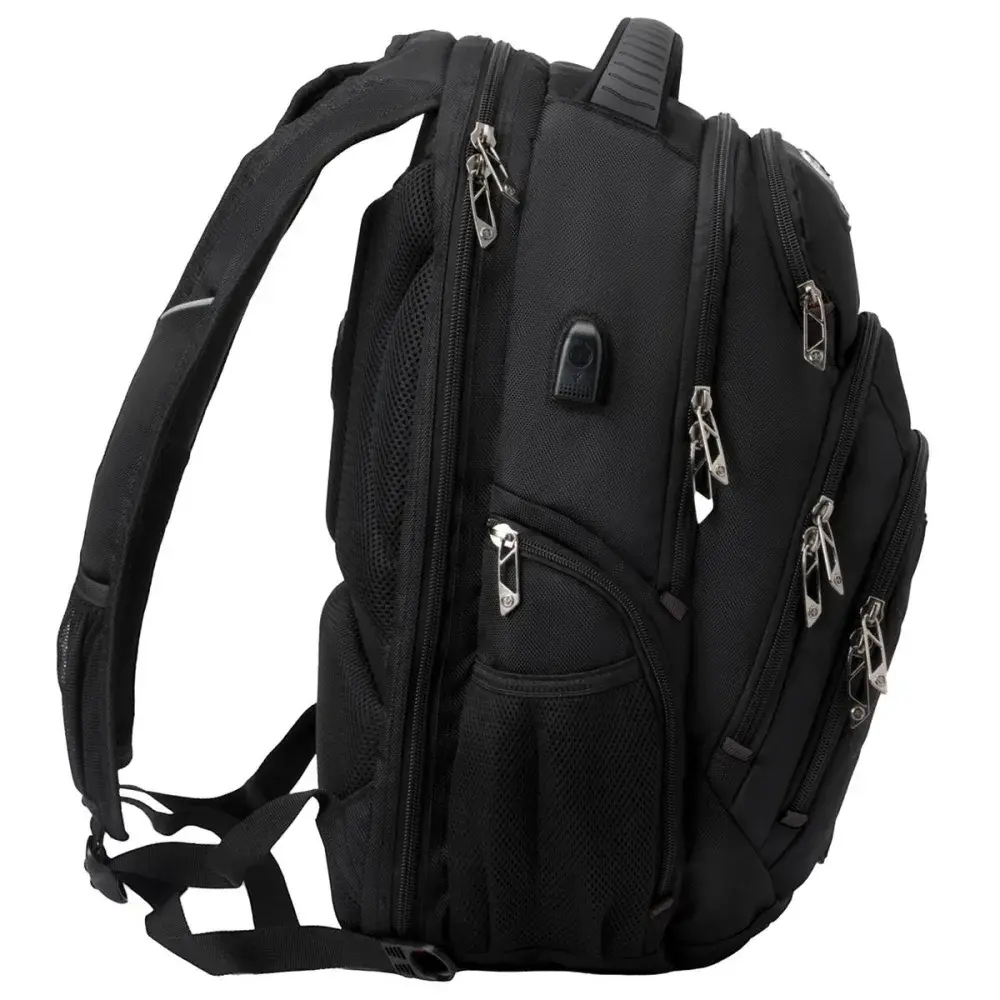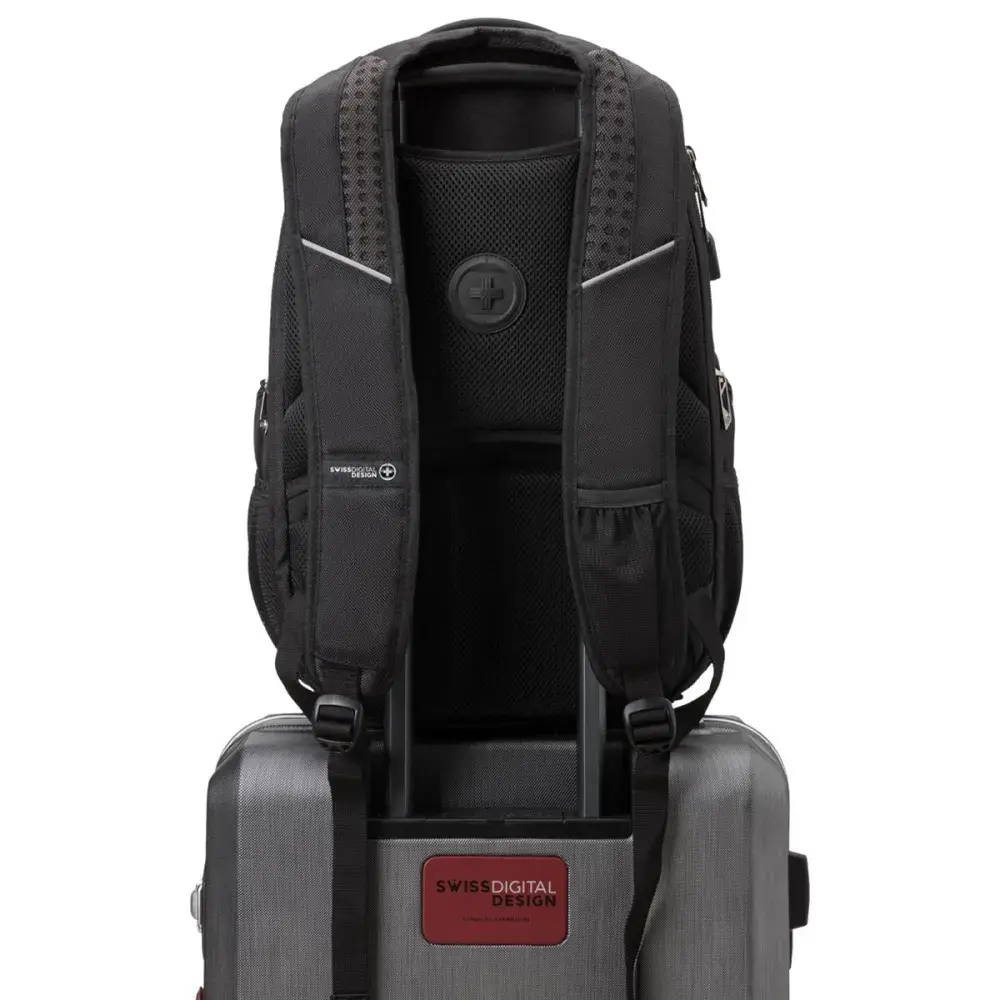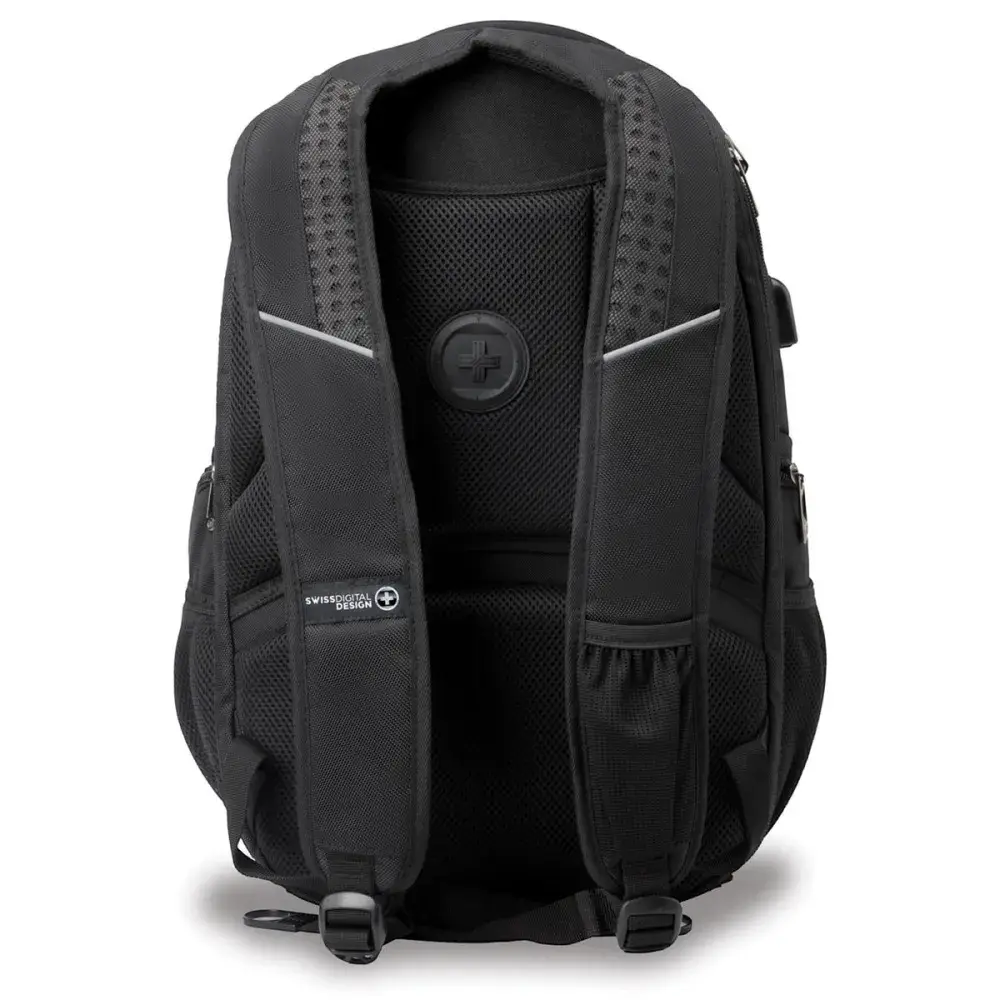 The Swissdigital Neptune is the ultimate travel companion, designed to move seamlessly from the boardroom to the boarding gate. With a huge 45L capacity, TSA-friendly 180° opening, and suspended padded laptop sleeve, it delivers effortless access and total protection for your digital gear, including a 16" MacBook Pro.Crafted with durable materials and heavy-duty padding, the Neptune is engineered for comfort and endurance. Its smart USB interface with built-in cable, RFID protection pocket, and multi-function organisation pockets keep you connected and secure wherever you go. Travel-ready details like the trolley sleeve, sunglasses pocket, and side pockets for bottles or gear make it as practical as it is professional.Finished in sleek black with multiple decoration areas, the Neptune offers bold branding potential — a powerful blend of innovation, function, and modern design built for life on the move.