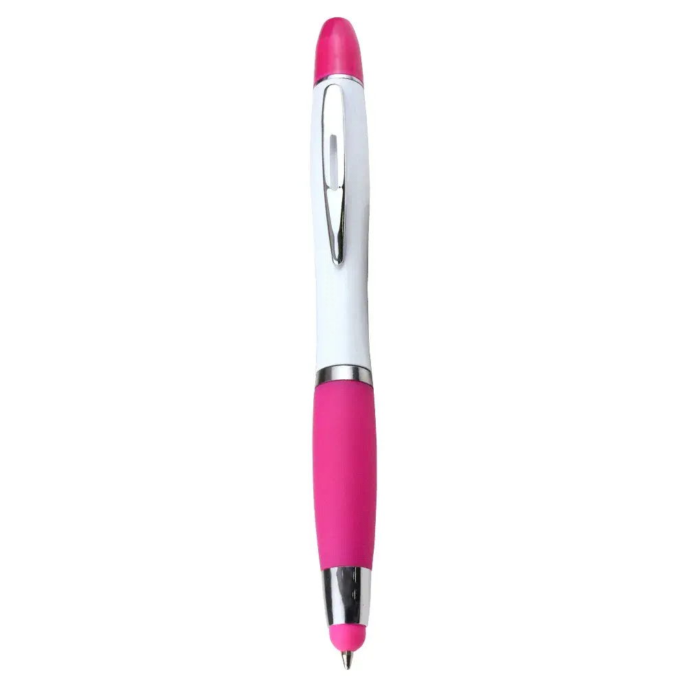 The Nash Ballpoint Pen-Highlighter features a twist-action retractable ballpoint with a stylus and a wax highlighter with a removable cap. The clip allows you to securely fasten to a pocket or notebook. The wax highlighter ensures the highlighter does not dry out.