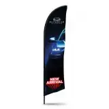 Large feather flag kit that is designed for eye-catching displays at events, forecourts or retail settings. The polyester flag is ready for crisp sublimated graphics, offering strong visibility and smooth movement in the breeze. A lightweight pole set packs neatly into the carry bag, while multiple base options let you adapt the setup to different locations and display needs.