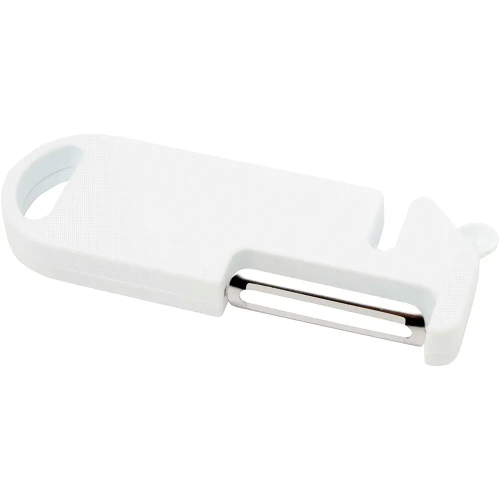 This multi-purpose kitchen tool combines four essential functions in one compact design. Made from recycled plastic, it features a peeler, bottle opener, knife sharpener, and a pointed tip for removing potato blemishes. A built-in hanging hole allows for easy storage. Practical and space-saving, it’s a versatile must-have for every home cook.
