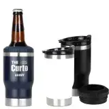 350ml tumbler, Doubles as a cooler for glass bottle, Double-walled and vacuum-insulated design, Built-in bottle opener on the base, Two interchangeable lids, Silicone rim to securely grip the glass bottle