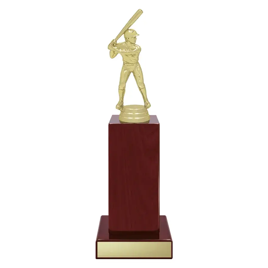 Antique Gold Lynx trophy features a classic wreath design and vibrant theme for baseball and softball. Trophies offer the option of including your custom logo over various sizes.
