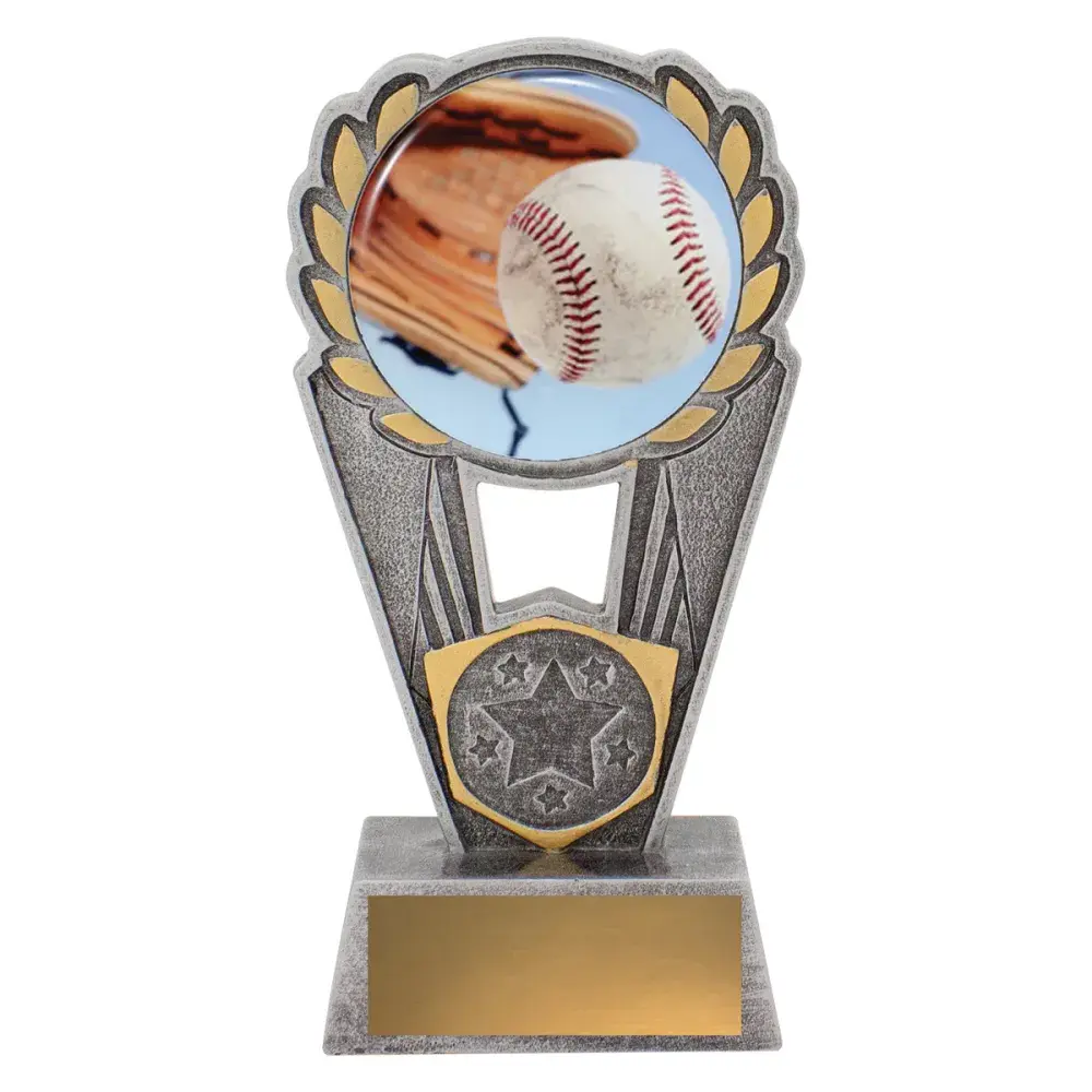 Polaris series offers a striking design of trophy with excellent options for personalisation. Trophies showcase an iconic baseball theme over number of sizes. Space for your 25mm logo if required.