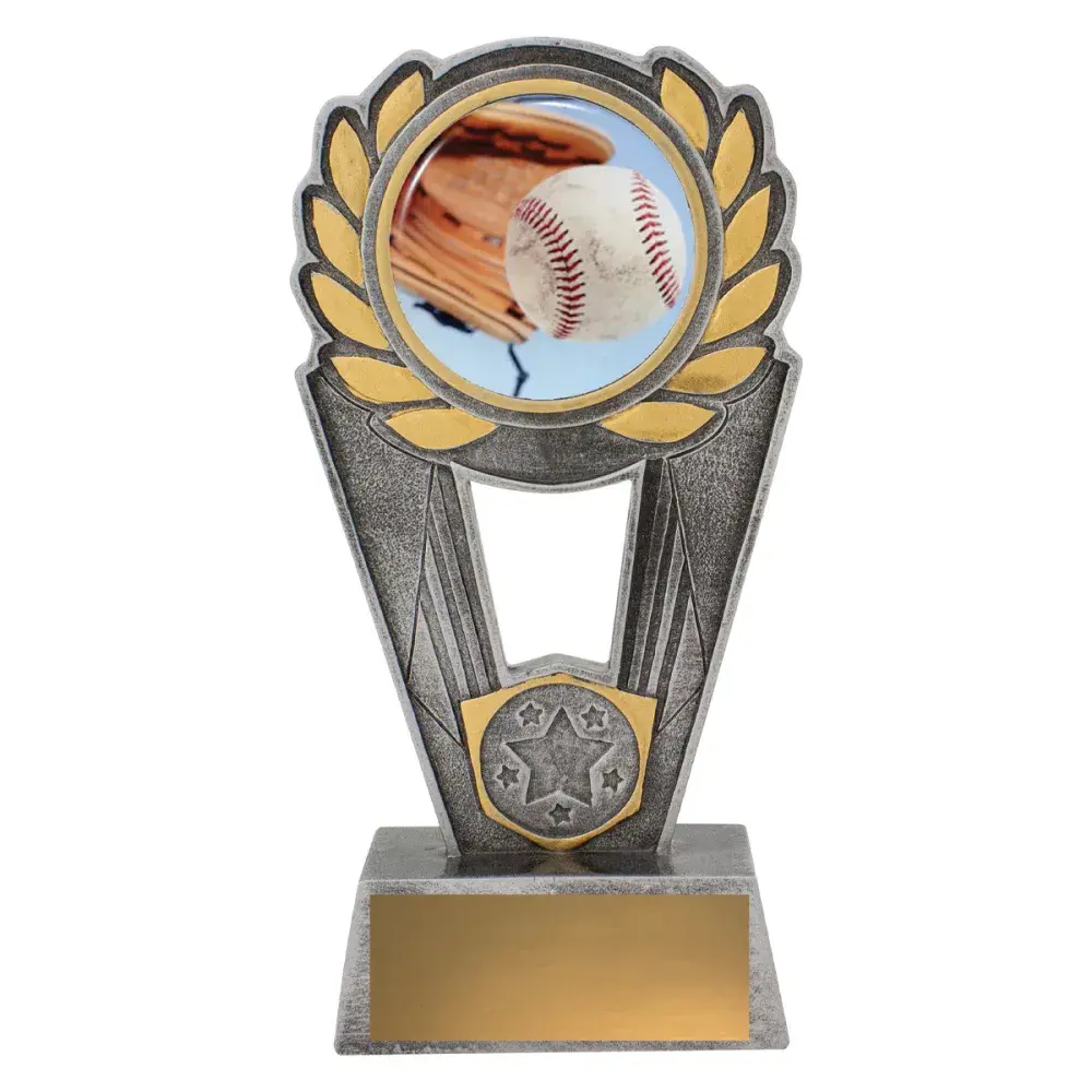 Polaris series offers a striking design of trophy with excellent options for personalisation. Trophies showcase an iconic baseball theme over number of sizes. Space for your 25mm logo if required.