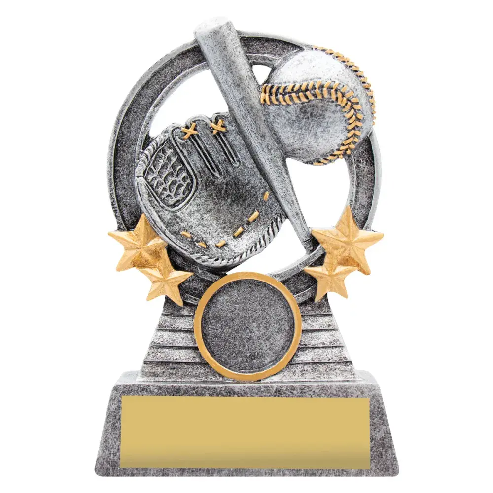 Comet series of trophies feature bat and ball elements framed by an elegant star inspired design. With space for your logo, these trophies are perfect for your participation & club orders.