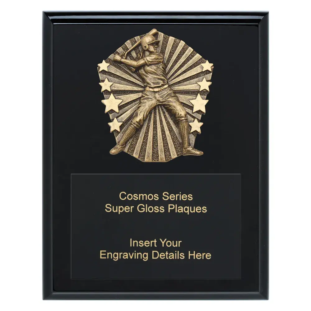 Range of super gloss plaques in classic black with brilliant Cosmos fronts and matte black engraving. Choose plaque - available in 3 sizes - to suit your sport or activity.