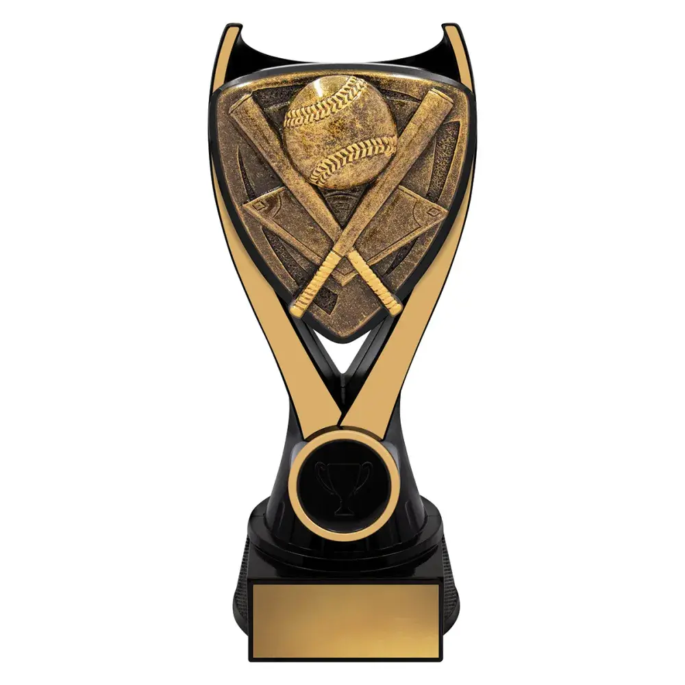 Nova series of trophies present a unique black & gold colour combination with a bold 3D type design to really celebrate the sport or activity of your awards.