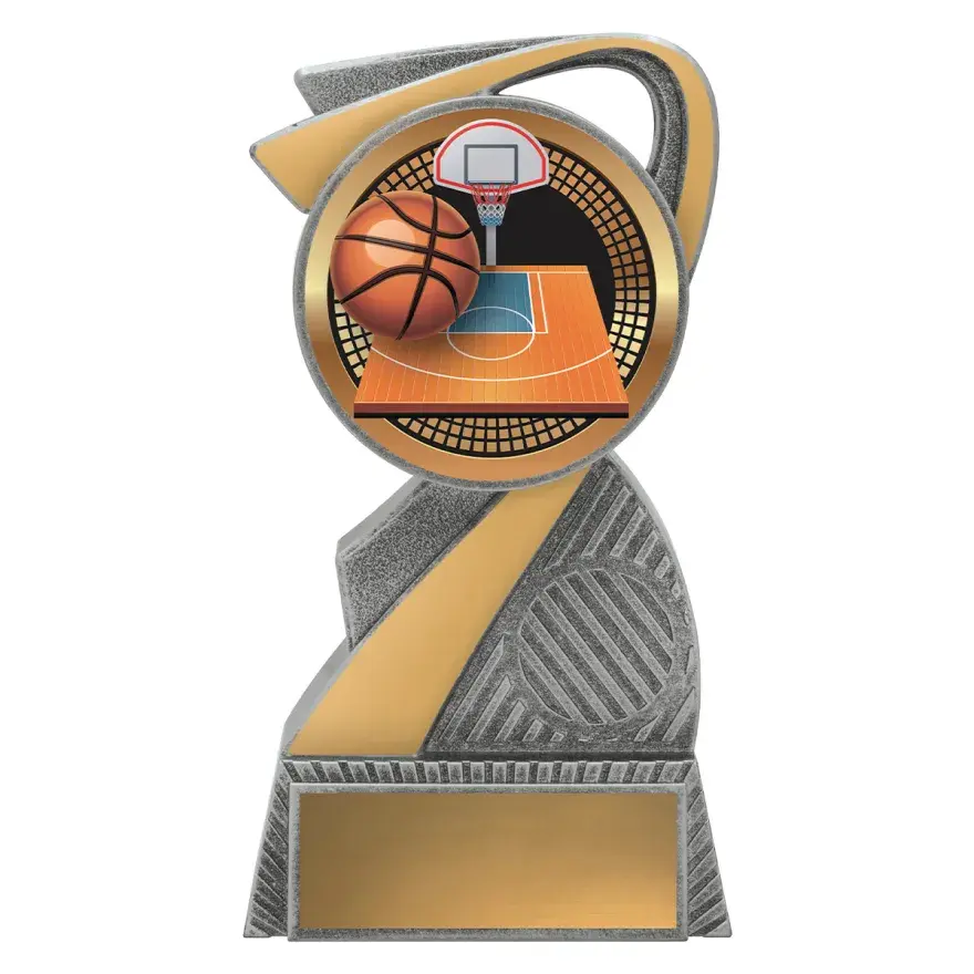 Basketball budget trophy series in 3 sizes, antique silver and gold, a popular choice for participation and bulk orders. Basketball trophies feature an effective design with prominent & recognisable basketball elements. A generic theme award with the option for customisation - ideal for boys and girls.