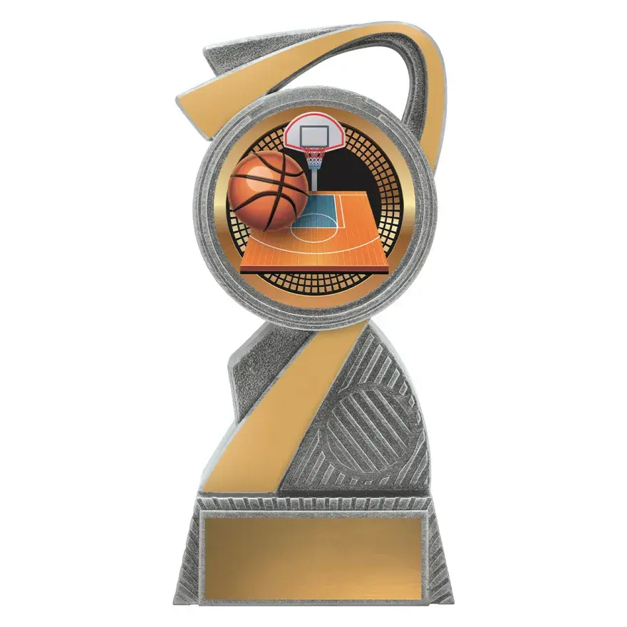 Dynamic basketball trophies perfect for male and female players at your event. These 'Flag' basketball trophies feature a stylish star based design with iconic ball & net elements.