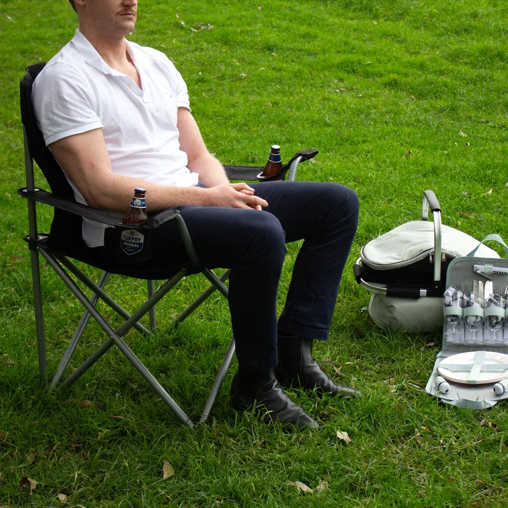This extra-wide, extra-strong folding chair is ideal for a long day on the sidelines or enjoying a drink by the grill. With an extra sturdy steel frame and durable 600D fabric.