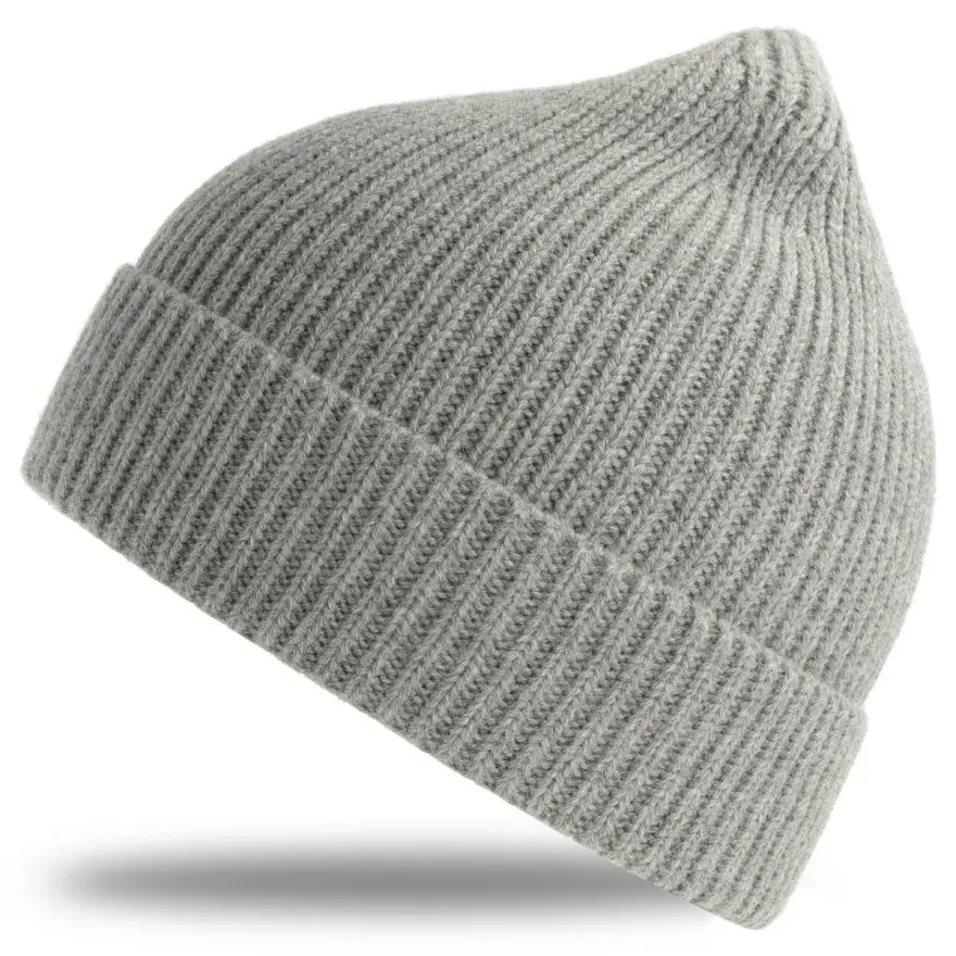 Fine rib-knitted beanie with regular cuff and fully fashioned top. Made of 50% recycled polyester and 50% acrylic. Single knitting to hold its shape well.