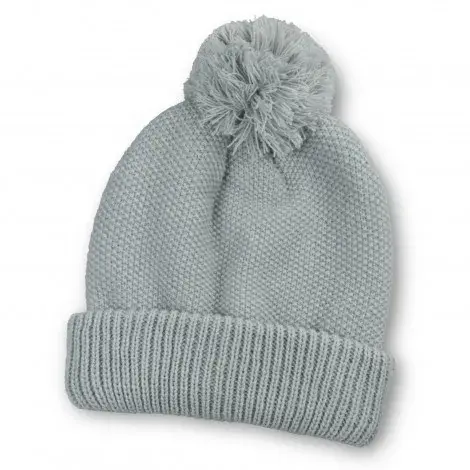 Versatile acrylic double-knit beanie, known for its soft and durable fit. It features a cuff and a pom-pom on the top, and is one size fits.