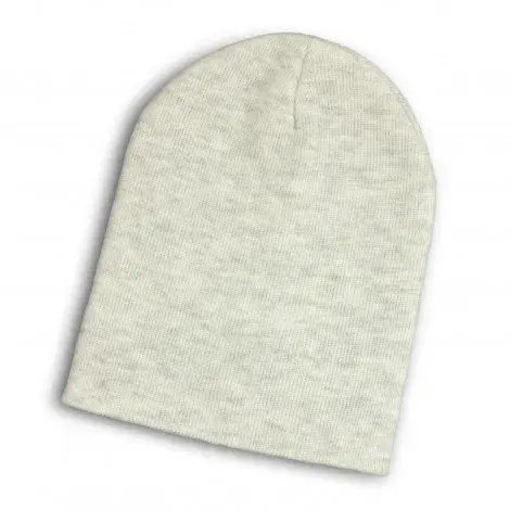 Slouch-style beanie knitted from heather-style acrylic yarns