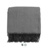Soft grey herringbone pattern with charcoal tassel and frayed edge detailing