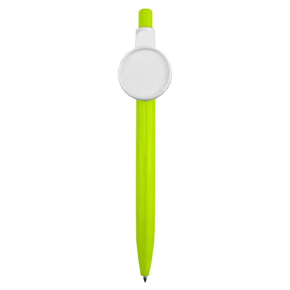 A sleek click-action plastic pen with a round badge on the clip for personalised branding. Showcase your logo on a large digital printing area and add individual names or numbers for a unique touch. Crafted with German-made cross-type black ink refill tungsten carbide ball and 1200 meters writing distance. Stylish and functional.