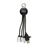 The Kinetic Round Glow Cable is the ultimate 4-in-1 charging solution, designed to simplify your device connectivity needs. This cable features Type C, Micro USB, 8 Pin power out, USB A, and Type C power in connectors, making it compatible with a wide range of devices. The illuminated round top section not only serves as a power indicator but also brings your laser-engraved design or logo to life with a captivating glow when connected to power. Crafted with a braided cable and silver connectors, it combines durability and style while offering an elegant, distraction-free charging experience. Perfect for those who need a reliable charging cable without data transfer capabilities.
