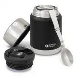Premium 500ml double wall, vacuum insulated stainless steel food flask. It has a unique copper lining on the inner wall which improves its performance and the outer wall has a tough powder coated finish. Elite will keep food hot for up to 12 hours and cold for up to 24 hours. It has a screw on serving bowl and a foldable stainless steel spoon which snaps securely into the lid. This precision vacuum flask is BPA-free and laser engraves to a shiny steel finish. It is presented in a Swiss Peak gift box with an information leaflet included. This product is not dishwasher safe and handwashing is recommended.