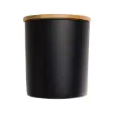 Elegant glass jar available in black or white with bamboo lid.