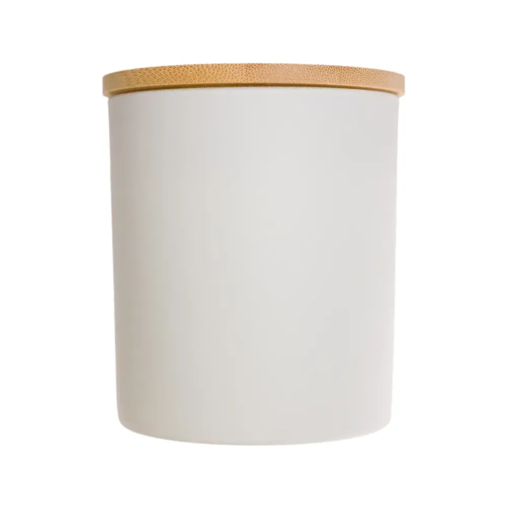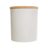 Elegant glass jar available in black or white with bamboo lid.
