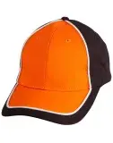 6 panel structured laid back front, pre-curved & velcro crossover. Contrast peak and crown with