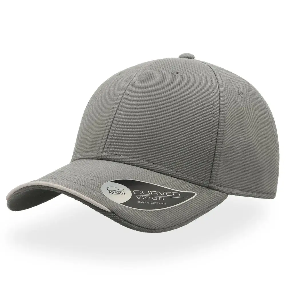 A 6-panel baseball cap in polyester jacquard fabric, with a contrasting piping on visor and long velcro strap closure at rear.