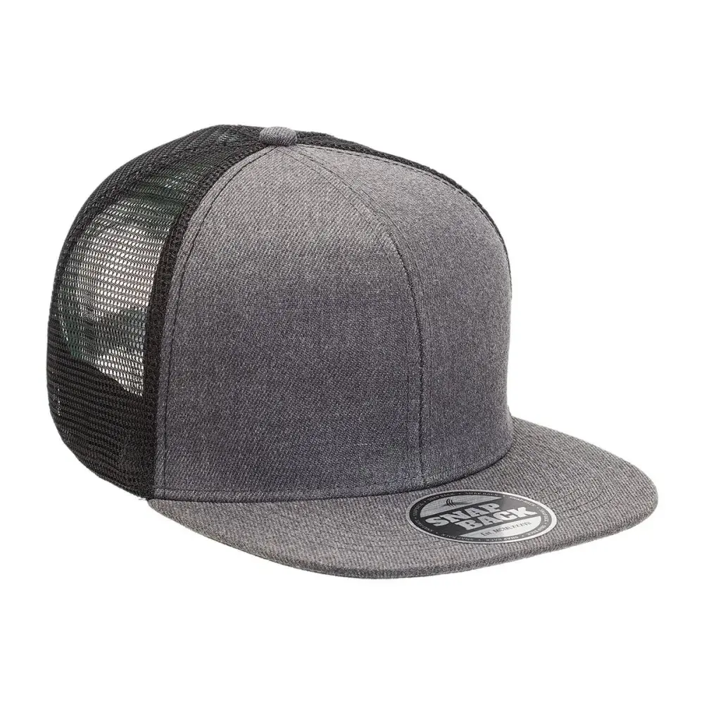 Custom Heathered Flat Peak Trucker Charcoal Heather,Black